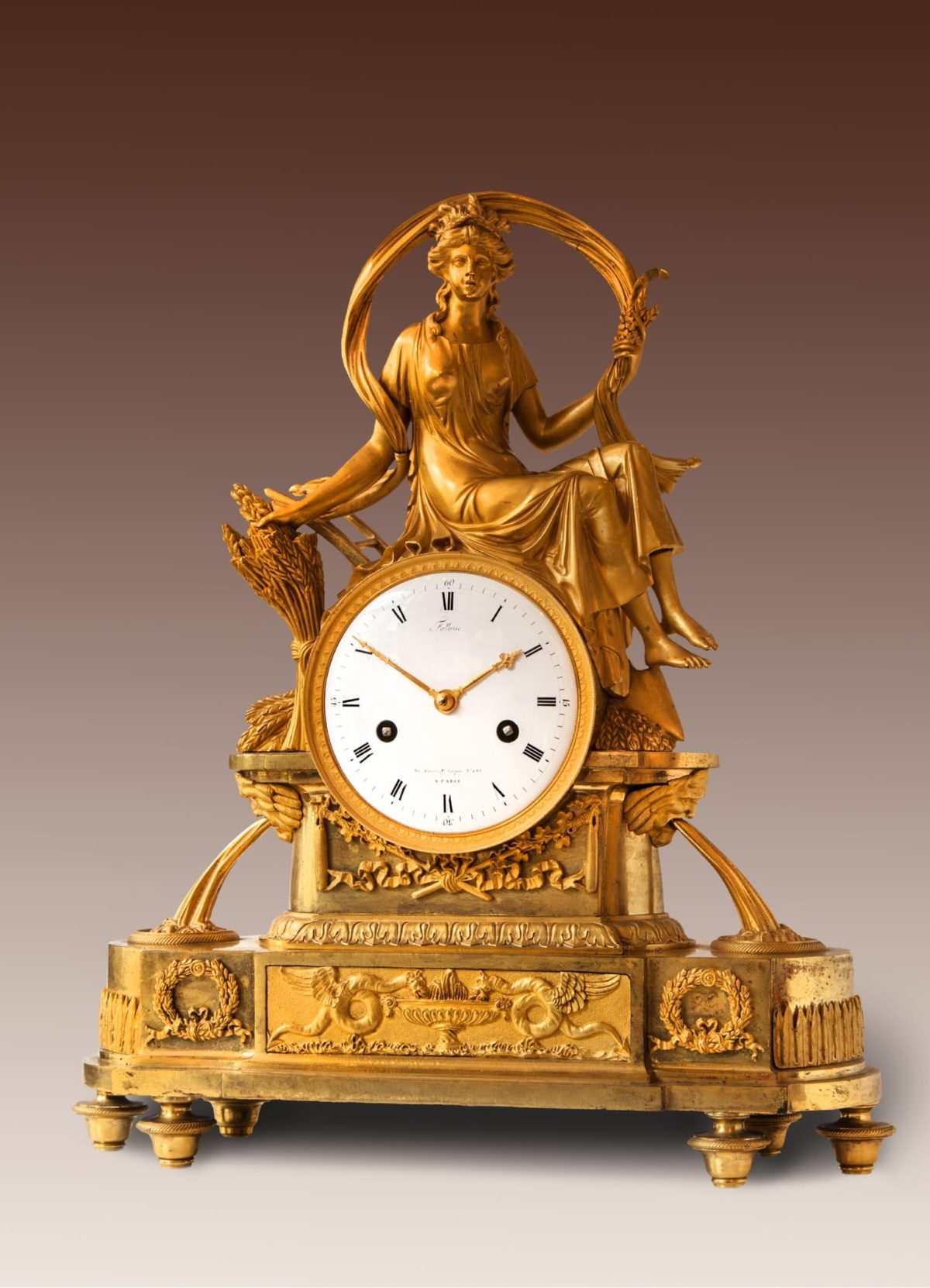 Empire pendule van vuurverguld brons voorstellende Ceres.