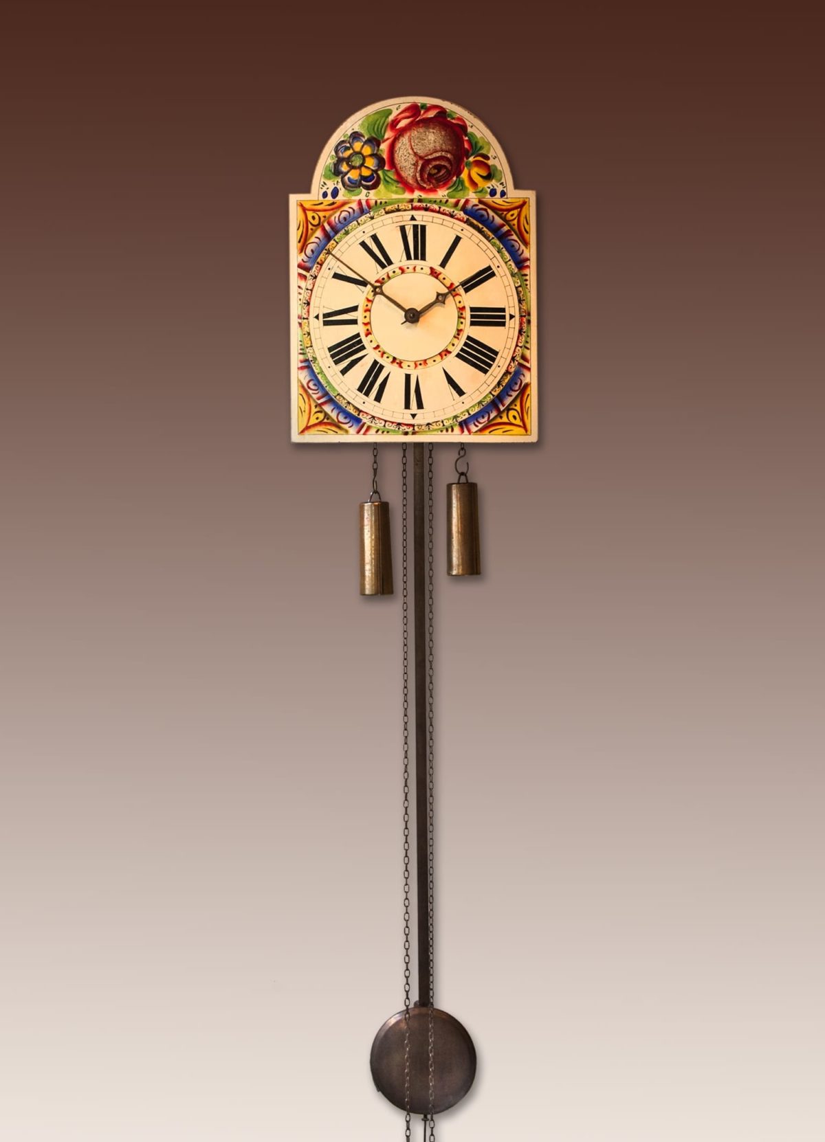 Houten wijzerplaat met een polychrome florale decoratie.